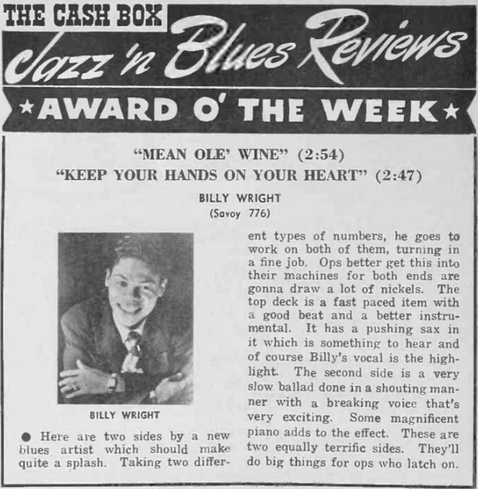 Keep Your Hands On Your Heart Billy Wright Savoy Records 1951
